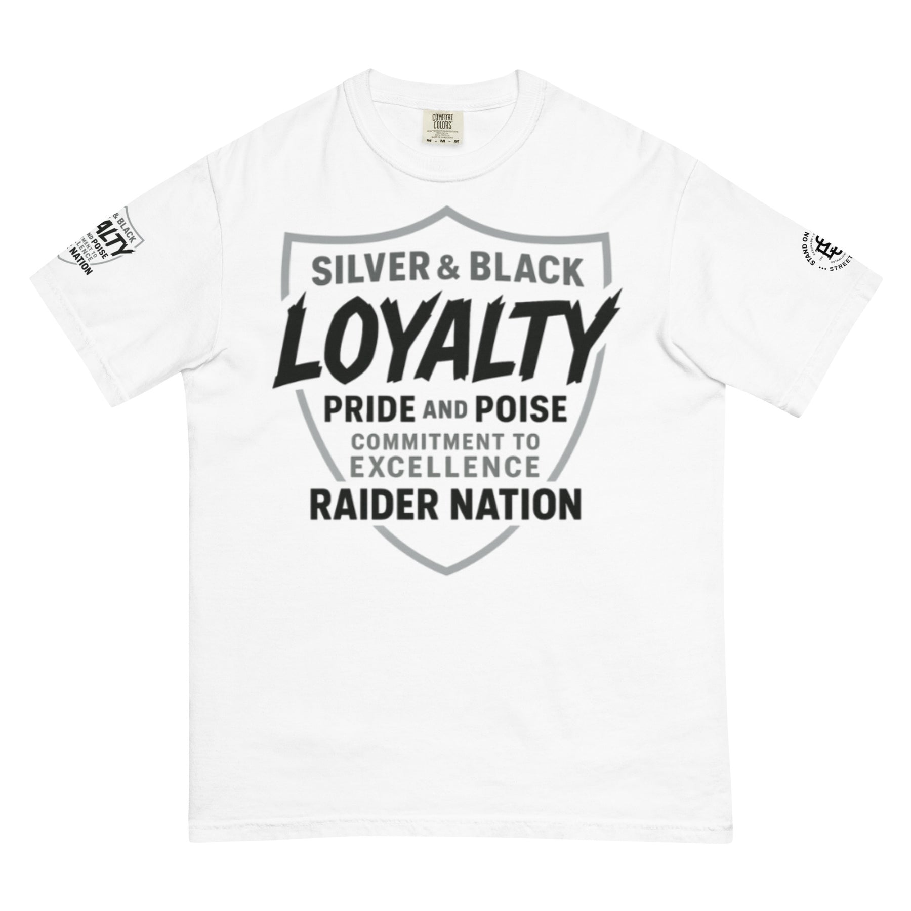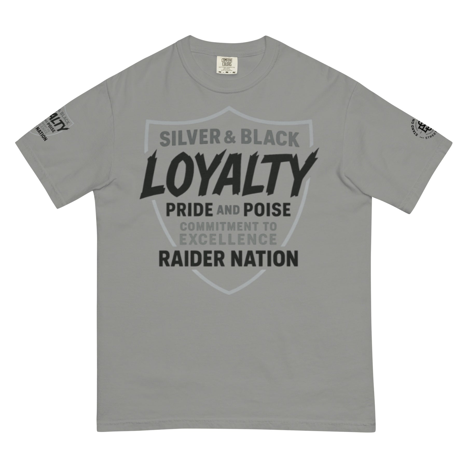 Front and center, the word LOYALTY hits hard across the chest, framed by the legendary Raider Nation spirit. Crafted from soft, breathable cotton with a bold black-on-gray design that commands respect — whether you’re tailgating, grinding, or just standing on business.