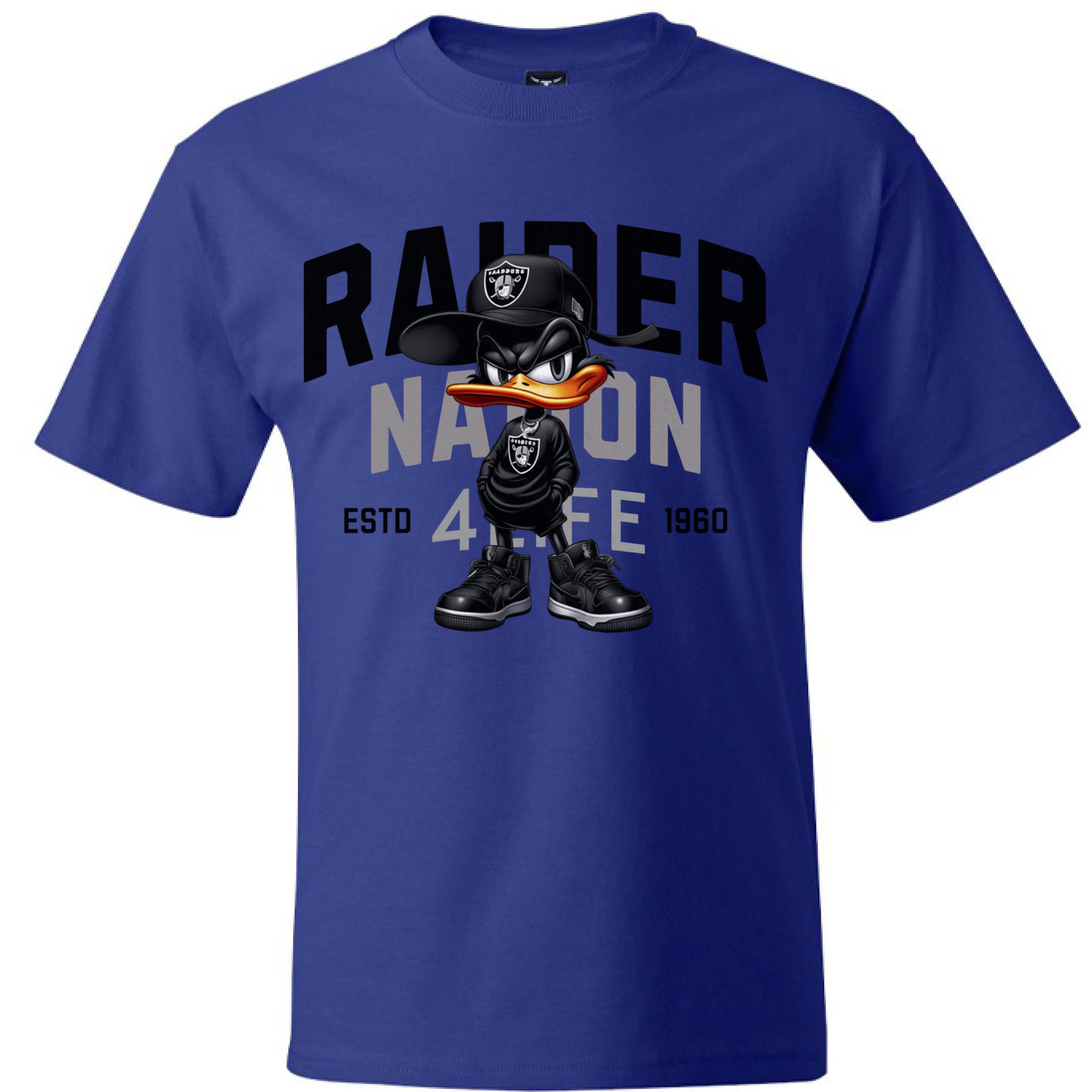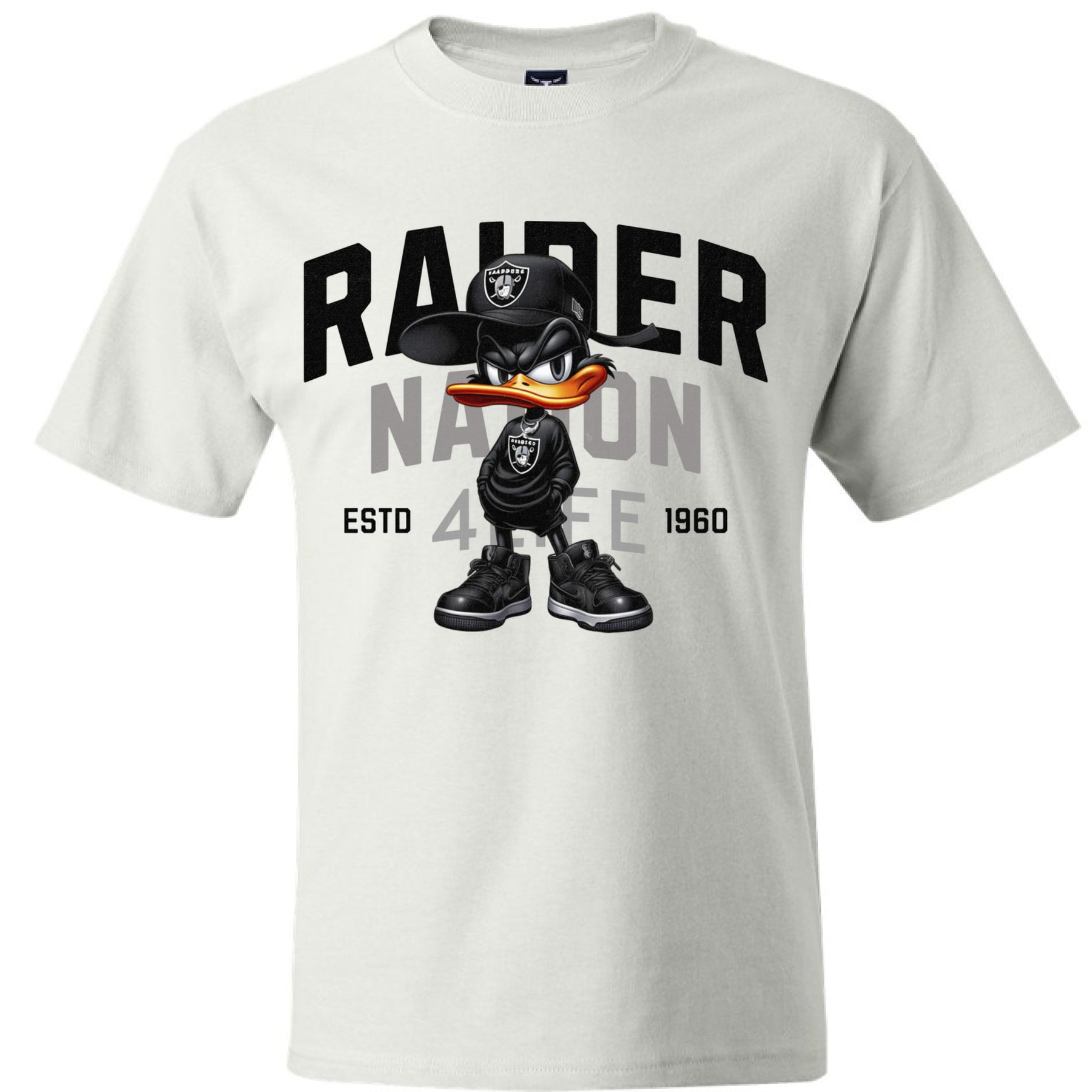 Rep your squad with this bold Raider Nation tee! Featuring a streetwear-inspired cartoon Raider character and “Raider Nation 4 Life” graphic, it’s perfect for true fans. Soft cotton, classic fit, and built for game days or everyday flex. ESTD 1960 – loyalty never goes out of style.