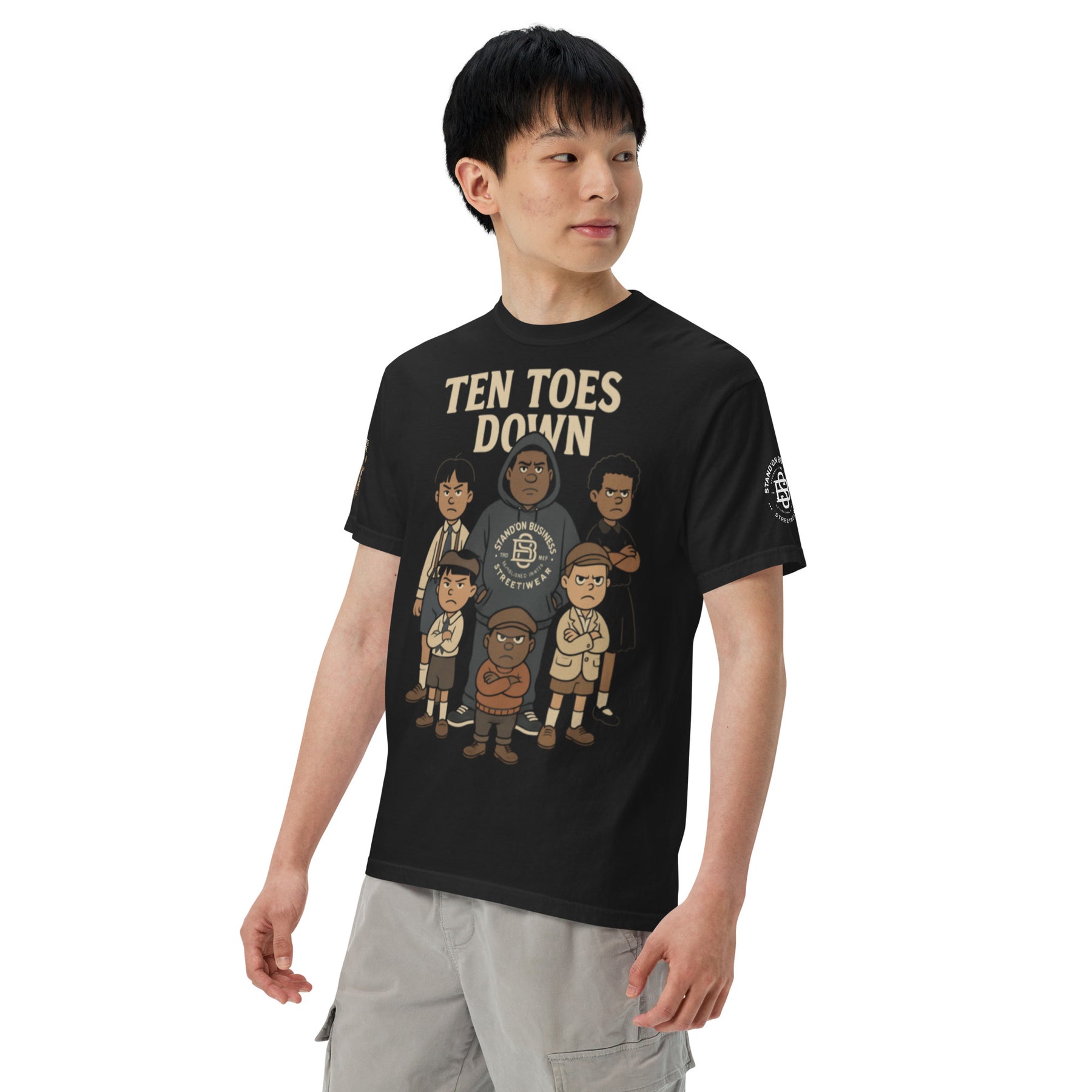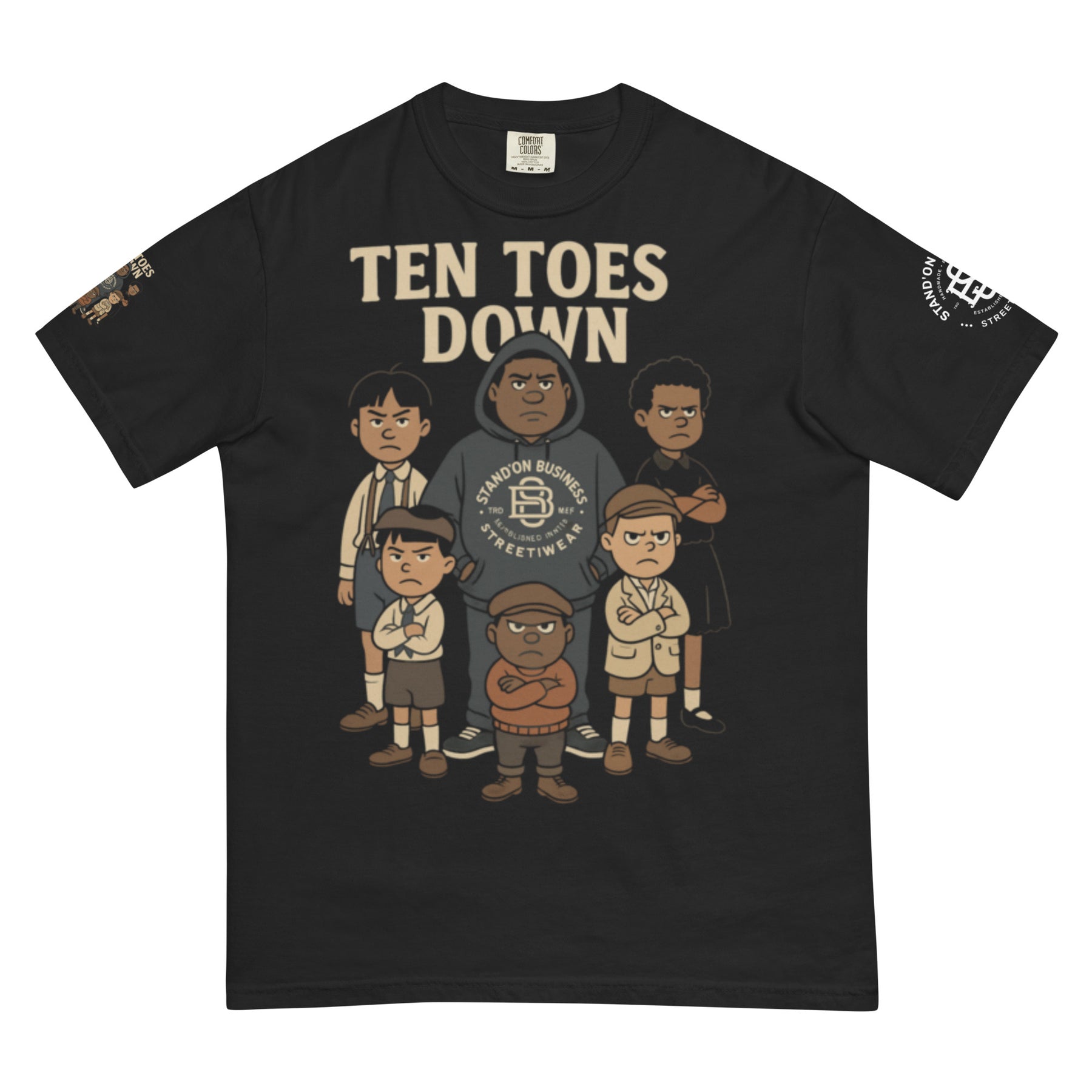 Stand firm and united in the **"Ten Toes Down" Tee** by Stand’on Business. Featuring a powerful lineup of multicultural characters, this design represents unity, diversity, and unwavering loyalty. No matter your background—if you stand for something, you’re ten toes down with us. Respect the grind.